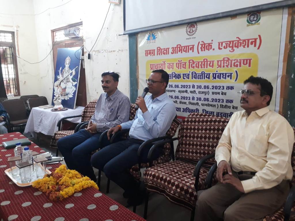 इससे पूर्व जिला शिक्षा अधिकारी श्री महेश कुमार निहाले द्वारा 5 दिवसीय प्राचार्य प्रशिक्षण की रूपरेखा से अवगत कराकर जानकारी प्रदान की गई। सहायक आयुक्त श्री नीलेश रघुवंशी द्वारा बिंदुवार शैक्षणिक गुणवत्ता सुधार हेतु प्राचार्य को टिप्स दिये गये। इस दौरान कलेक्टर ने पर्यावरण मंत्रालय भारत सरकार, राष्ट्रीय हरित कोर मिशन, पर्यावरण नियोजन एवं संस्थान भोपाल (एफ्को) द्वारा इको क्लब हेतु प्राप्त कीट, राष्ट्रीय हिंदी ग्रंथ अकादमी द्वारा प्राप्त पुस्तकों के सेट पुस्तकालय हेतु व आगामी 27 जुलाई को होने वाले पर्यटन क्विज के पोस्टर का वितरण प्राचार्यो को किया गया।
