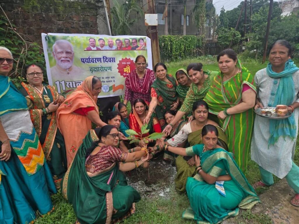 ने बताया कि महिला मोर्चा जिला भोपाल द्वारा मंगलवार को ’’एक पेड़ माँ के नाम’’ अभियान के अंतर्गत हरियाली अमावस्या के अवसर पर भोपाल के सभी 85 वार्डो में एक साथ 10-10 पौधे लगाए। इस अवसर पर मोर्चा पदाधिकारी एवं अन्य नेतागण हरे परिधान रहे।