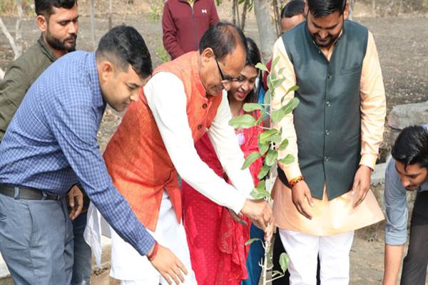मुख्यमंत्री चौहान ने सामाजिक संस्था के प्रतिनिधियों के साथ पौध-रोपण किया