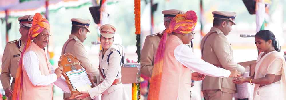 छत्तीसगढ़ के सीएम विष्णुदेव साय ने उत्कृष्ट सेवा के लिए पुलिस परेड ग्राउंड रायपुर में आयोजित स्वतंत्रता दिवस समारोह में 46 पुलिस अधिकारियों और जवानों को पुलिस पदक अलंकरण से सम्मानित किया। साय ने पुलिस वीरता पदक से 26, राष्ट्रपति पुलिस पदक से 2, सराहनीय सेवा सुधार पदक से 2 और राज्य स्तरीय एवं पुलिस महानिदेशक पदकों से 5 अधिकारी-कर्मचारियों को अलंकृत किया।