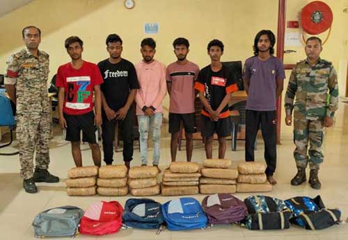 इसी दौरान पुलिस ने ओड़िसा की ओर से आ रहे एक यात्री बस को जांच के लिए रोक कर पुलिस ने बस में बैठे सभी यात्रियों से पूछ-ताछ करते हुए उनके पास रखे बैगों की तलाशी लेना शुरू किया। इस तलाशी में पुलिस ने बस में बैठे 6 युवकों और दो नाबालिक लड़कों के बैग से लगभग 44 किलो गांजा बरामद किया। जिसकी अनुमानित बाजार मूल्य 4 लाख 40 हजार रुपये आंकी गई है। 44 किलो अवैध गांजा बरामद होने पर पुलिस सभी 6 आरोपियों भाबेन मंडल निवासी ओड़िसा, कपिल उर्फ ऋतिक मल्होत्रा निवासी दिल्ली, गोविंद बच्चाड़ निवासी दिल्ली, अविनाश निवासी दिल्ली, सागर निवासी दिल्ली और चिंटू माड़ी निवासी ओड़िसा और दो नाबालिकों को गिरफ्तार कर लिया है। पूछताछ में गिरफ्तार सभी आरोपियों ने अपना जुर्म कबूल करते हुए पुलिस को बताया वह सभी यह गांजा हैदराबाद और दिल्ली लेकर जाने की फिराक में थे, फिलहाल पुलिस के द्वार इस मामले में आवश्यक कार्यवाही की जा रही है।