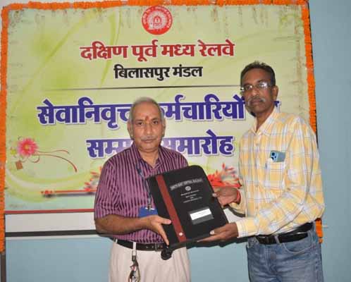 दक्षिण पूर्व मध्य रेलवे बिलासपुर मंडल के विभिन्न विभागों में कार्यरत् 67 रेल परिवार के सदस्य माह जून 2023 में अपनी गौरवशाली रेल सेवा पूर्ण करने के पश्चात् सेवानिवृत्त हुए। मंडल कार्मिक सभागार में आयोजित सम्मान समारोह में समस्त सेवानिवृत्त कर्मचारियों को सम्मानपूर्वक विदाई दी गई । इस अवसर पर सहायक कार्मिक अधिकारी श्री आर शंकरन, श्री रमेश बाबू, श्री देवाशीष घोष द्वारा सभी सेवानिवृत्त कर्मचारियों को बंदोबस्त भुगतान से संबंधित समस्त दस्तावेज, सेवा प्रशस्ति प्रमाण-पत्र एवं सेवा मैडल  प्रदान किया गया । इस अवसर पर सेवानिवृत्त कर्मियों के परिजन कल्याण निरीक्षक तथा कार्मिक निपटारा शाखा के कर्मचारीगण उपस्थित थे।