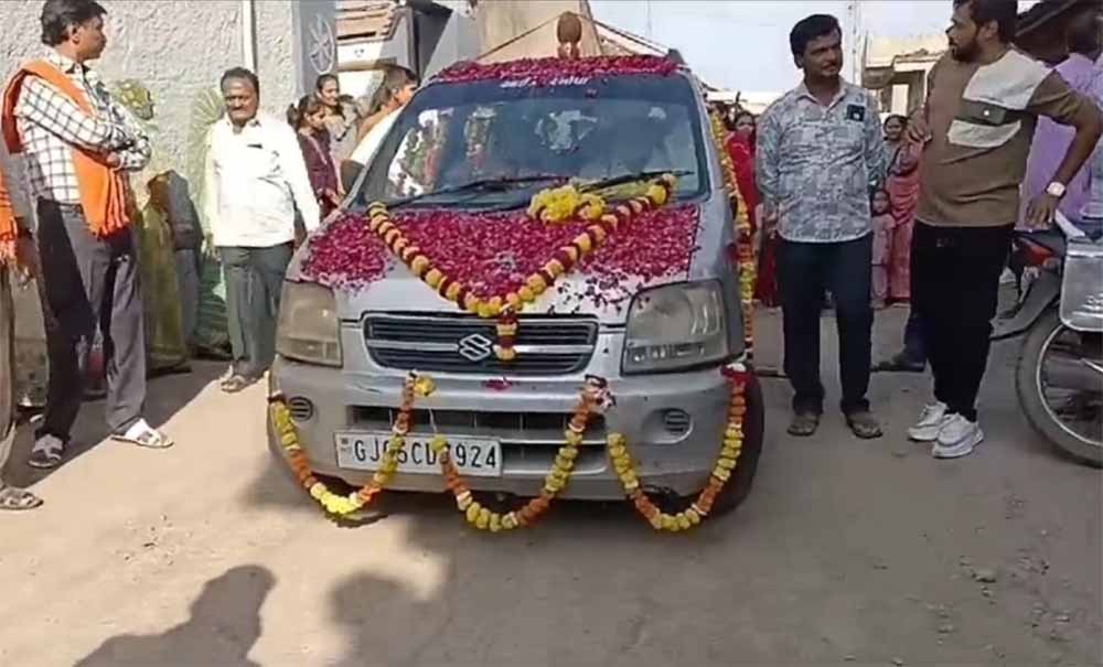 दरअसल, पूरा मामला गुजरात के अमरेली जिले में लाठी तालुका का है। यहां के पाडरशिंगा गांव में रहने वाले किसान संजय पोरला ने अपनी पुरानी कार को लकी मानते हुए कार को फूलों से सजाकर समाधि दी। बताया जा रहा है कि संजय पोरला ने साल 2013 में कार खरीदी थी जिसे वह अपने लिए लकी मानते हैं। संजय पोरला का मानना है कि जबसे उन्होंने कार खरीदी, उसके बाद से उन्हें आर्थिक समृद्धि नसीब हुई। साथ ही मान-प्रतिष्ठा भी बढ़ी। इसके बाद उन्होंने सूरत जाकर बिजनेस भी शुरू किया। वहीं अब कार पुरानी हुई तो किसान ने उसे बेचना मुनासिब नहीं समझा और उसे समाधि देने की सोची। इसे लिए उन्होंने समाधि कार्यक्रम का आयोजन किया। इस कार्यक्रम में उन्होंने आसपास के साधु-संतों समेत अपने रिश्तेदारों को भी आमंत्रित किया।