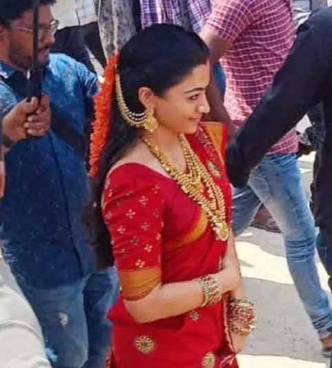 रश्मिका मंदाना को 'पुष्पा 2: द रूल' के सेट पर लाल साड़ी पहने और मांग में सिंदूर भरे स्पॉट किया गया। उनका लुक देखकर लग रहा है कि वह पुष्पराज के साथ शादी का सीक्वेंस शूट कर रही थीं।