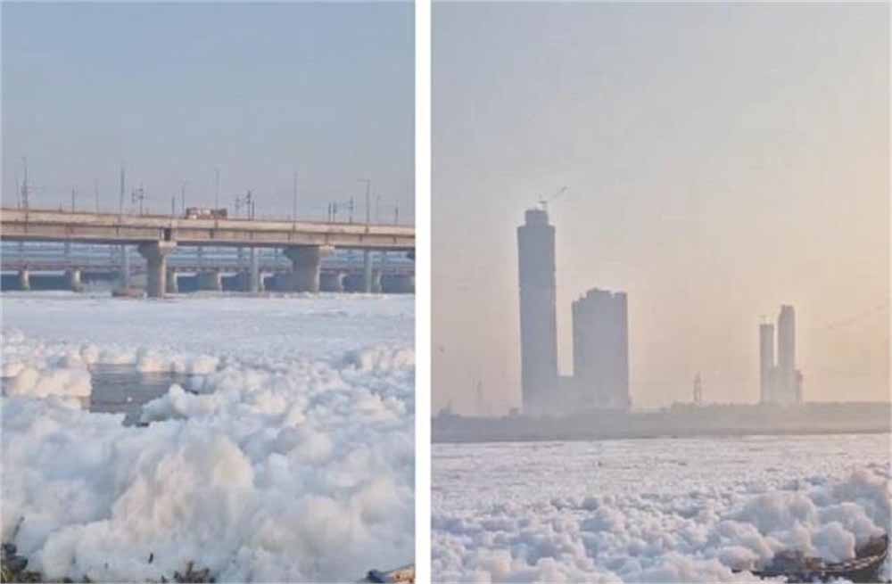 दिल्ली में यमुना नदी में शुक्रवार को सफेद झाग की मोटी परत देखने को मिली। विशेषज्ञों का कहना है कि यह लोगों के स्वास्थ्य के लिए खतरनाक है विशेष रूप से तब, जब त्योहार का मौसम नजदीक आ गया है। सोशल मीडिया पर प्रसारित कई वीडियो में नदी का ज्यादातार हिस्सा झाग की परत से ढका दिख रहा है मानो जैसे नदी की सतह पर बादल छा गए हों। हालांकि बाद में ये झाग धीरे धीरे छंट गया।