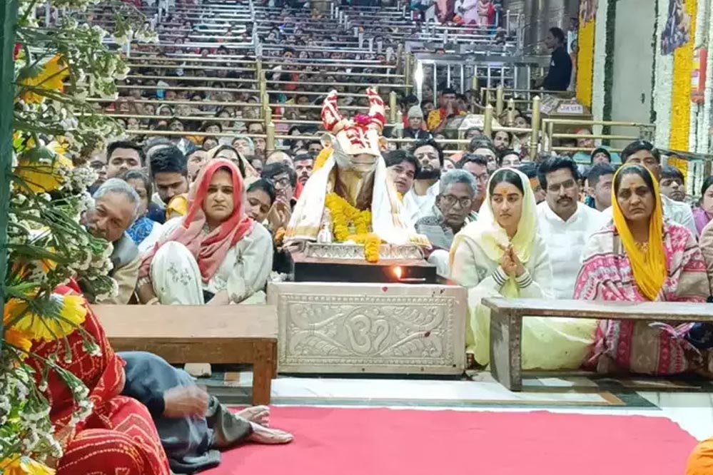 साल 2023 की ब्लाकबस्टर फिल्म 'गदर 2' में सनी देओल, अमीषा पटेल और उत्कर्ष शर्मा के अलावा इसमें सिमतौर कौर भी नजर आई थीं। अब वह बाबा महाकाल की भस्म आरती में शामिल होने के लिए महाकालेश्वर मंदिर उज्जैन पहुंची। उन्होंने चांदी द्वार से बाबा महाकाल का पूजन अर्चन भी किया और माथा टेककर बाबा का आशीर्वाद भी लिया।
