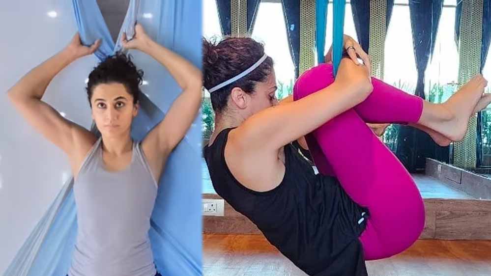एरियल योग करते हुए एक्‍ट्रेस तापसी पन्नू ने दिखाई अपनी फिटनेस