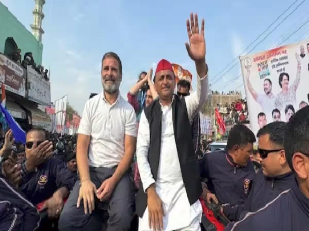 सात साल पहले मशहूर हुई 'यूपी के दो लड़कों' की जोड़ी रविवार को आगरा में नजर आई। कांग्रेस नेता राहुल गांधी की भारत जोड़ो न्याय यात्रा में सपा प्रमुख अखिलेश यादव पहली बार शामिल हुए। प्रियंका गांधी ने अखिलेश यादव का स्वागत किया। प्रियंका ने कहा कि आज भारत जोड़ो यात्रा में अखिलेश यादव के पहुंचने से बहुत खुशी का दिन है। अखिलेश यादव ने यात्रा को संबोधित करने के बाद राहुल और प्रियंका गांधी के साथ लाल जीप पर रोड शो भी किया। इससे पहले अखिलेश यादव और राहुल गांधी ने 2017 में एक साथ मंच साझा किया था और यूपी विधानसभा का चुनाव मिलकर लड़ा था। सात साल बाद राहुल और अखिलेश एक साथ यूपी में किसी सार्वजनिक मंच पर दिखाई दिए हैं।