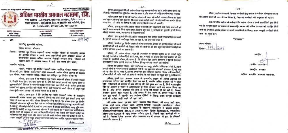 अखिल भारतीय अग्रवाल महासभा के राष्ट्रीय अध्यक्ष सतीश अग्रवाल ने मध्यप्रदेश के मुख्यमंत्री को पत्र लिखते हुए राज्य में भूमाफियों की बढ़ती गुंडागर्दी और अनिल अग्रवाल पर हो रहे अत्याचारों को लेकर गंभीर चिंता व्यक्त की है। महासभा की ओर से दिए गए पत्र में आरोप लगाया गया है कि भूमाफियों के हौसले इस कदर बुलंद हो गए हैं कि वे सैकड़ों गुंडों के साथ अनिल अग्रवाल की जमीन पर अवैध कब्जा करने का प्रयास कर रहे हैं। यही नहीं, अनिल अग्रवाल और उनके परिवार को जान से मारने की धमकियाँ भी दी जा रही हैं, जिससे उनके जीवन पर गंभीर खतरा मंडरा रहा है।