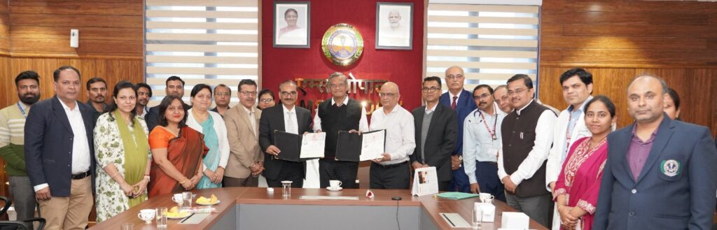 एम्स भोपाल के कार्यपालक निदेशक प्रो. (डॉ.) अजय सिंह के मार्गदर्शन में एम्स भोपाल और पंडित खुशीलाल शर्मा शासकीय आयुर्वेद महाविद्यालय एवं संस्थान, भोपाल ने आज एक महत्वपूर्ण समझौता ज्ञापन (एमओयू) पर हस्ताक्षर किए हैं। यह साझेदारी शैक्षणिक उत्कृष्टता, रोगी देखभाल और अनुसंधान में नवाचार को बढ़ावा देने का एक महत्वपूर्ण कदम है। इस समझौते के माध्यम से दोनों संस्थान आयुर्वेद और आधुनिक चिकित्सा के बीच समन्वय स्थापित करेंगे और एकीकृत स्वास्थ्य सेवा प्रदान करने के लिए मिलकर काम करेंगे। समझौते का मुख्य उद्देश्य चिकित्सा शिक्षा को सुदृढ़ करना, एकीकृत स्वास्थ्य सेवा दृष्टिकोण को बढ़ावा देना और आयुर्वेद और आधुनिक चिकित्सा में अनुसंधान के अवसरों को बढ़ाना है।