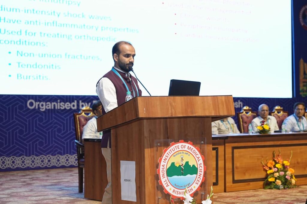 डॉ. केतन मेहरा (एसोसिएट प्रोफेसर, यूरोलॉजी विभाग) ने इस सम्मेलन में प्रमुख भूमिका निभाई। उन्होंने “शॉकवेव्स इन इरेक्टाइल डिस्फंक्शन” विषय पर एक वैज्ञानिक प्रस्तुति दी, जिसमें पुरुष स्वास्थ्य में उभरते हुए उपचारात्मक दृष्टिकोणों को उजागर किया गया। इसके अतिरिक्त, डॉ. मेहरा को कई वैज्ञानिक सत्रों की अध्यक्षता एवं संचालन के लिए आमंत्रित किया गया, जहां उन्होंने यूरोलॉजी क्षेत्र की समसामयिक चुनौतियों पर उच्च स्तरीय अकादमिक चर्चाओं में सक्रिय योगदान दिया। एम्स भोपाल की अकादमिक भागीदारी को आगे बढ़ाते हुए, डॉ. कुमार मधवन (एसोसिएट प्रोफेसर, यूरोलॉजी विभाग) ने यूरोलॉजी में सोनोग्राफी के उपयोग पर आधारित लाइव रेजिडेंट प्रशिक्षण सत्रों में भाग लिया और देश भर से आए युवा यूरोलॉजिस्ट्स के साथ व्यावहारिक ज्ञान साझा किया। एम्स भोपाल के यूरोलॉजी विभाग के रेजीडेंट्स ने वृषण कैंसर, युवतियों में दुर्लभ यूरोलॉजिकल ट्रॉमा के प्रबंधन, और बाल यूरोलॉजी में असामान्य विषयों पर मौलिक शोध प्रस्तुत किए। इन प्रस्तुतियों को काफी सराहना मिली और इन्होंने सम्मेलन के विविध शैक्षणिक वातावरण को समृद्ध किया।