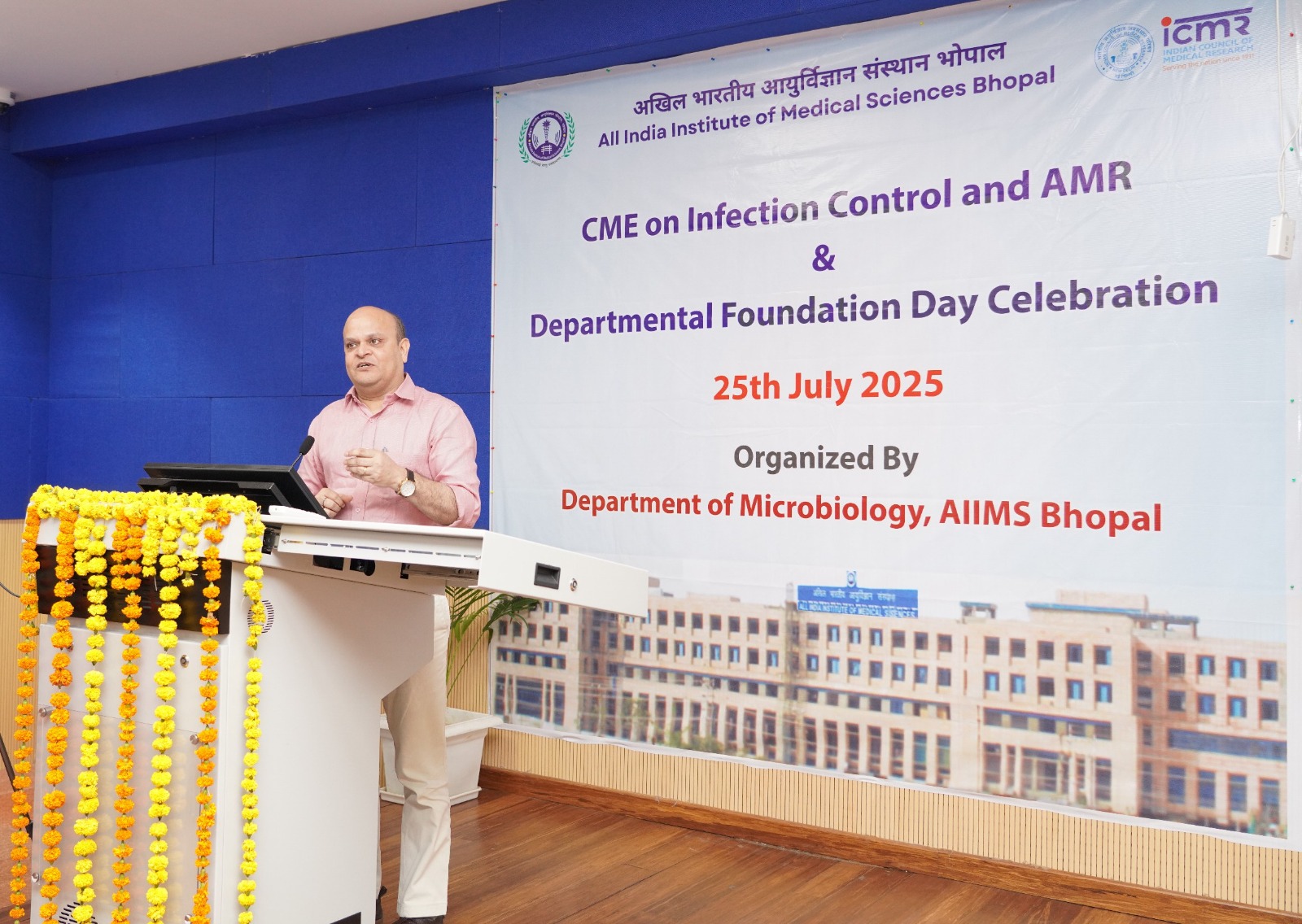 कार्यपालक निदेशक प्रो. (डॉ.) अजय सिंह के नेतृत्व में एम्स भोपाल स्वास्थ्य सेवा, शिक्षा एवं अनुसंधान के क्षेत्र में निरंतर प्रगति कर रहा है। इसी क्रम में माइक्रोबायोलॉजी विभाग ने अपनी स्थापना के 12 वर्ष पूर्ण होने के उपलक्ष्य में एक दिवसीय सतत चिकित्सा शिक्षा (CME) कार्यक्रम ‘इन्फेक्शन कंट्रोल एंड एंटीमाइक्रोबियल रेजिस्टेंस (AMR)’ का आयोजन किया। इस मौके पर विभाग की वार्षिक रिपोर्ट तथा वर्ष 2025 की H1 एंटीबायोग्राम का विमोचन किया गया, जो चिकित्सकों को संक्रमण के उपचार में एंटीबायोटिक दवाओं के विवेकपूर्ण एवं प्रभावी उपयोग के लिए मार्गदर्शन प्रदान करेगा। कार्यक्रम में एम्स भोपाल के फैकल्टी सदस्य, रेजिडेंट डॉक्टर, पीएचडी शोधार्थी, तकनीकी एवं नर्सिंग स्टाफ सहित मध्यप्रदेश के विभिन्न मेडिकल कॉलेजों, स्वास्थ्य संस्थानों एवं कॉर्पोरेट अस्पतालों से आए 200 से अधिक प्रतिभागियों ने उत्साहपूर्वक भाग लिया। सीएमई के दौरान आयोजित वैज्ञानिक सत्रों में देश के प्रतिष्ठित संस्थानों से आमंत्रित विशेषज्ञों ने एंटीमाइक्रोबियल रेजिस्टेंस, संक्रमण नियंत्रण, IPC ऑडिट्स तथा डायग्नोस्टिक प्रोटोकॉल्स जैसे समसामयिक विषयों पर अपने व्याख्यान प्रस्तुत किए। कार्यक्रम के अंतर्गत IPC विषय पर आधारित एक प्रश्नोत्तरी प्रतियोगिता भी आयोजित की गई, जिसमें प्रतिभागियों ने सक्रिय भागीदारी दिखाई। समापन सत्र के दौरान विजेताओं को पुरस्कृत किया गया। इस अवसर पर कार्यपालक निदेशक प्रो. (डॉ.) अजय सिंह ने कहा, “एम्स भोपाल का माइक्रोबायोलॉजी विभाग संस्थान की प्रमुख इकाइयों में से एक है, जिसने बीते 12 वर्षों में नैदानिक उत्कृष्टता, संक्रमण नियंत्रण और अनुसंधान के क्षेत्र में अनुकरणीय योगदान दिया है। यह सीएमई केवल ज्ञानवर्धन का अवसर नहीं है, बल्कि यह हमें प्रतिजैविक प्रतिरोध जैसी वैश्विक चुनौती से निपटने के लिए सामूहिक प्रयासों की ओर प्रेरित करता है। विभाग द्वारा प्रकाशित एंटीबायोग्राम, चिकित्सकों और जनस्वास्थ्य विशेषज्ञों के लिए एक महत्वपूर्ण दस्तावेज साबित होगा।”