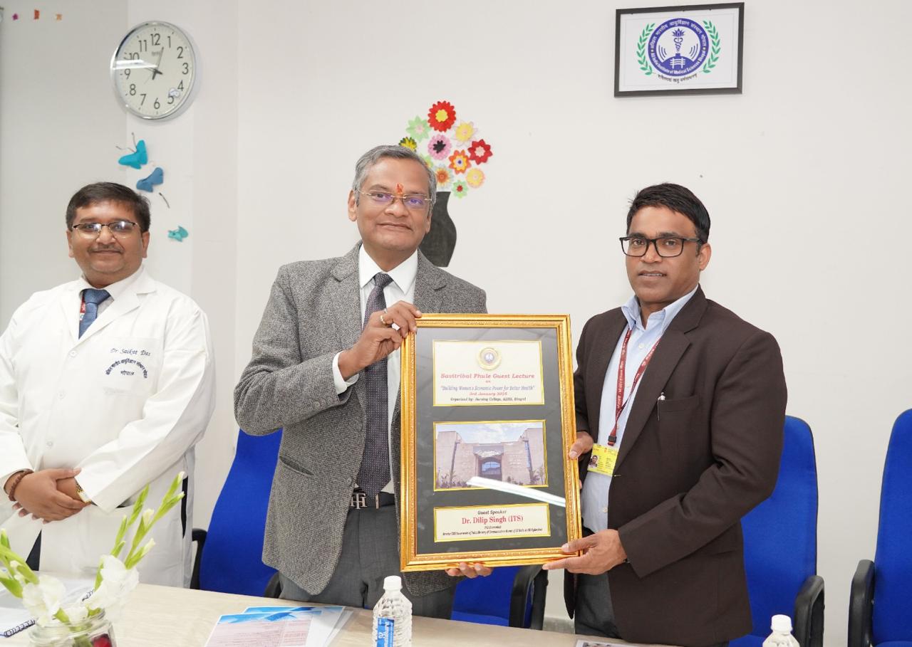 एम्स भोपाल के कार्यपालक निदेशक प्रो. (डॉ.) अजय सिंह के मार्गदर्शन में, संस्थान ने 3 जनवरी 2025 को सावित्रीबाई फुले भवन, नर्सिंग कॉलेज में “बेहतर स्वास्थ्य के लिए महिलाओं की आर्थिक शक्ति” विषय पर एक अतिथि व्याख्यान का आयोजन किया गया। यह कार्यक्रम महिलाओं के आर्थिक सशक्तिकरण और स्वास्थ्य सुधार के आपसी संबंधों पर केंद्रित था, जिसमें यह दर्शाया गया कि आर्थिक स्वतंत्रता कैसे व्यक्तिगत और सामाजिक परिवर्तन का माध्यम बन सकती है। इस मौके पर, प्रो. सिंह ने अपने संबोधन में कहा, “महिलाओं के आर्थिक सशक्तिकरण को मजबूत करना एक स्वस्थ समाज के लिए आवश्यक है। बेहतर स्वास्थ्य परिणामों के लिए बदलाव की शुरुआत स्कूल स्तर से ही होनी चाहिए।” उनकी टिप्पणियों ने लैंगिक समानता के माध्यम से दीर्घकालिक सामाजिक प्रगति को बढ़ावा देने के लिए प्रारंभिक हस्तक्षेप और मानसिकता में बदलाव की आवश्यकता पर जोर दिया।