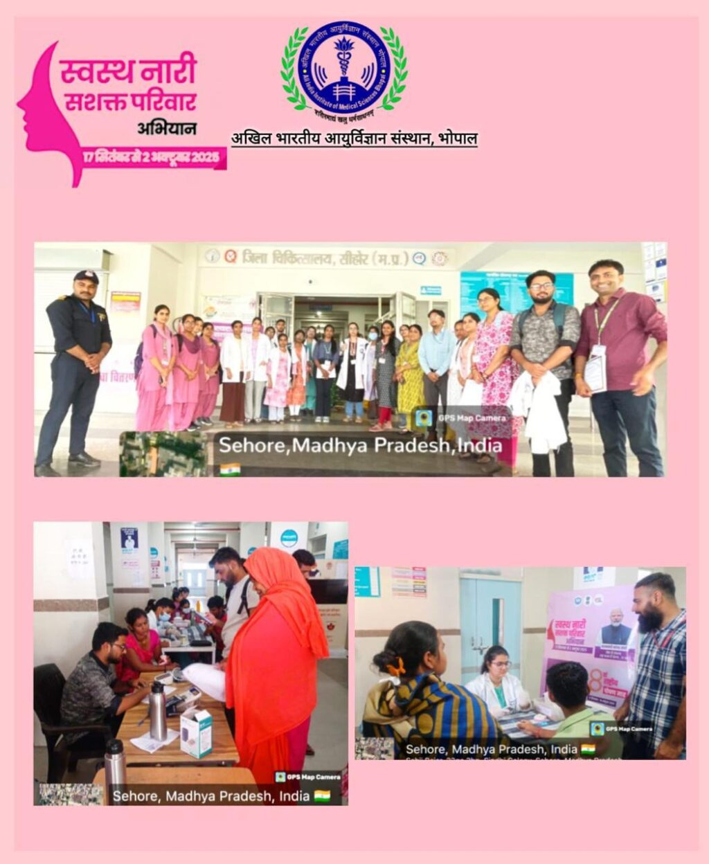 एम्स भोपाल ने “स्वस्थ नारी, सशक्त परिवार” अभियान के तहत 21 सितंबर 2025 को जिला अस्पताल सीहोर में नि:शुल्क स्वास्थ्य शिविर का आयोजन किया