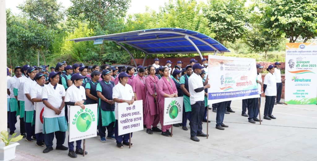 ‘स्वच्छता ही सेवा’अभियान (17 सितम्बर से 2 अक्टूबर 2025) के अंतर्गत पर्यावरण संरक्षण एवं स्वच्छता रैली का आयोजन किया गया। रैली एम्स भोपाल के कौटिल्य भवन से शुरू होकर ट्रॉमा एवं इमरजेंसी ब्लॉक तक सम्पन्न हुई। रैली में एम्स भोपाल के विभिन्न विभागों, फैकल्टी, नर्सिंग अधिकारियों, छात्रों, सुरक्षा एवं सफाई कर्मियों सहित सभी कर्मचारियों ने भाग लिया। इस अभियान के अंतर्गत चिकलोद गांव में स्वच्छता एवं स्वास्थ्य जागरूकता कार्यक्रम आयोजित कर सैनिटरी किट वितरित किए गए। सुरक्षा और हाउसकीपिंग कर्मचारियों के लिए हैंड हाइजीन प्रशिक्षण और पैथोलॉजी व बायोकैमिस्ट्री विभागों में विशेष सफाई अभियान चलाया गया।