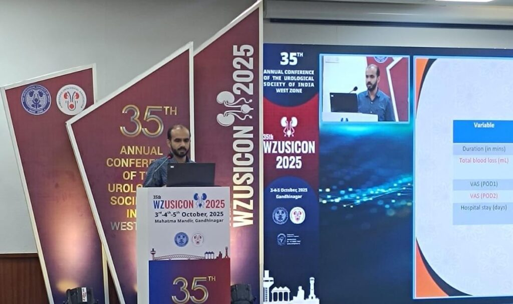 एम्स भोपाल अपने उन्नत शोध कार्यों और चिकित्सा नवाचारों के माध्यम से सर्जिकल अनुसंधान में महत्वपूर्ण योगदान दे रहा है। इसी क्रम में एम्स भोपाल के यूरोलॉजी विभाग के एसोसिएट प्रोफेसर डॉ. केतन मेहरा ने “रेट्रोपेरिटोनियल बनाम ट्रांसपेरिटोनियल लैप्रोस्कोपिक यूरोलॉजिकल सर्जरी में ऑपरेशन के दौरान होने वाले शारीरिक परिवर्तन और शल्य-परिणामों का तुलनात्मक अध्ययन” विषय पर अपना शोध कार्य 35वें वेस्ट ज़ोन यूरोलॉजिकल सोसाइटी ऑफ़ इंडिया कॉन्फ्रेंस (WZUSICON 2025) अहमदाबाद में प्रस्तुत किया। अन्य संकाय सदस्य, डॉ. देवाशीष कौशल और डॉ. कुमार माधवन ने भी इस अध्ययन में भाग लिया और मार्गदर्शन प्रदान किया। यह अध्ययन फरवरी 2024 से मई 2025 के बीच एम्स भोपाल में किया गया, जिसमें 42 वयस्क रोगियों को शामिल किया गया जिन्होंने लैप्रोस्कोपिक नेफ्रेक्टॉमी और एड्रेनलेक्टॉमी सर्जरी कराई।