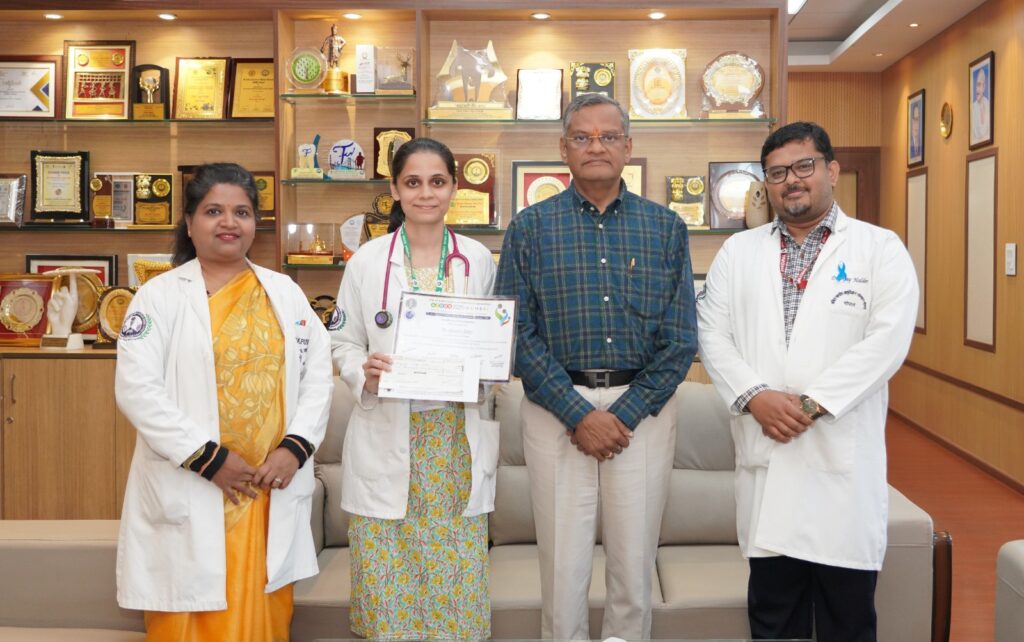एम्स भोपाल के प्रसूति एवं स्त्री रोग विभाग की जूनियर रेजिडेंट, डॉ. आयुषी सेठी ने 10 जनवरी को वैज्ञानिक कार्यक्रम की ई-पोस्टर प्रतियोगिता में भाग लिया। उनका विषय था, “प्राथमिक फैलोपियन ट्यूब कार्सिनोमा की पहचान और प्रबंधन में डायग्नोस्टिक लैप्रोस्कोपी की भूमिका: डायग्नोस्टिक परिशुद्धता का एक मामला।” उन्होंने उत्कृष्ट प्रदर्शन करते हुए यह प्रतियोगिता जीती और नकद पुरस्कार के साथ सर्वश्रेष्ठ ई-पोस्टर पुरस्कार हासिल किया। यह सफलता प्रसूति एवं स्त्री रोग विभागाध्यक्ष डॉ. के. पुष्पलता, पीजी समन्वयक डॉ. अजय हलदर और ई-पोस्टर गाइड डॉ. अवंतिका गुप्ता के मार्गदर्शन में संभव हुई। यह उपलब्धि न केवल विभाग बल्कि पूरे संस्थान के लिए गर्व का विषय है।