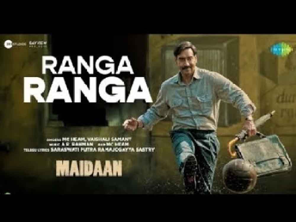 शैतान की अपार सफलता के अब अजय देवगन फिल्म मैदान में नजर आएंगे, जिसके निर्देशन की कमान अमित शर्मा ने संभाली है।इस फिल्म में अजय की जोड़ी प्रियामणि के साथ बनी है, जिसे पहली बार देखा जाएगा।यह फिल्म ईद के खास मौके पर यानी 10 अप्रैल को सिनेमाघरों में दस्तक देने को तैयार है।इससे पहले अब निर्माताओं ने मैदान का नया गाना रंगा रंगा जारी कर दिया है, जिसे वैशाली सामंत ने अपनी आवाज दी है।मैदान की कहानी फुटबॉल कोच सैयद अब्दुल रहीम पर आधारित है, जिनके मार्गदर्शन में भारतीय फुटबॉल टीम ने 1951 और 1962 के एशियाई खेलों में जीत हासिल की थी। इस दौर को भारतीय फुटबॉल का स्वर्ण युग कहा जाता है।बोनी कपूर इस फिल्म के निर्माता हैं।