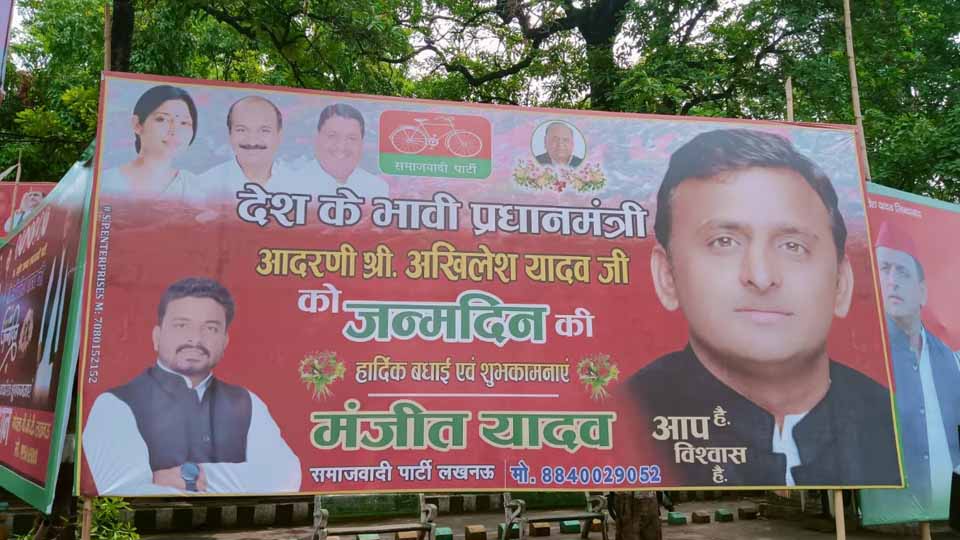 होर्डिंग में लिखा है कि ‘देश के भावी प्रधानमंत्री अखिलेश यादव को जन्मदिन की हार्दिक बधाई और शुभकामनाएं।