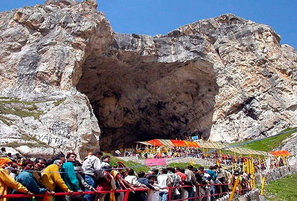 समुद्र तल से 3,880 मीटर की ऊंचाई पर स्थित अमरनाथ गुफा को दुनिया भर के लाखों हिंदू भगवान शिव के घर के रूप में पूजते हैं।