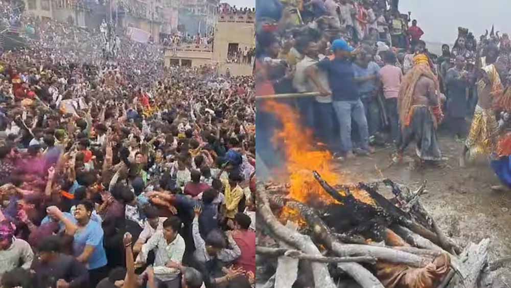 काशी के मणिकर्णिका घाट पर गुरुवार को अद्भुत नजारा देखने को मिला। यहां बड़े ही उत्साह के साथ जलती चिताओं के बीच चिता भस्म की होली खेली गई। मसाने की होली खेलने के लिए मणिकर्णिका घाट के महाश्मशान पर जन सैलाब उमड़ पड़ा। ऐसी मान्यता है कि भगवान भोलेनाथ मणिकर्णिका के महाश्मशान में अपने गणों के साथ चिता भस्म की होली खेलते हैं। पूरे देश में रंगों और गुलालों से होली खेली जाती है, लेकिन शिव की नगरी काशी में चिता की राख के साथ भी होली खेली जाती है। ऐसी होली पूरे विश्व में सिर्फ काशी में मनाई जाती है।
