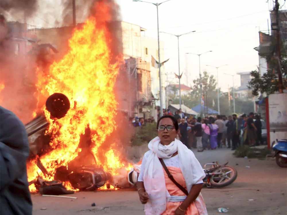 मणिपुर के इंफाल घाटी में बढ़ते तनाव के बीच गुस्साई भीड़ ने भारतीय जनता पार्टी (भाजपा) के तीन और कांग्रेस के एक विधायक के आवासों पर हमला कर दिया। अधिकारियों के अनुसार, प्रदर्शनकारियों ने राज्य के मुख्यमंत्री एन. बीरेन सिंह के पैतृक आवास पर भी धावा बोलने की कोशिश की, लेकिन पुलिस ने उन्हें रोक दिया।