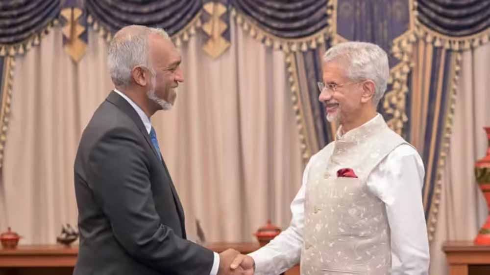 भारत के साथ रिश्तों में तनाव के बीच मालदीव के राष्ट्रपति मोहम्मद मुइज्जू ने शनिवार को विदेश मंत्री एस जयशंकर से मुलाकात की। मुइज्जू ने अपने आधिकारिक एक्स अकाउंट पर इस मुलाकात पर अपनी खुशी भी व्यक्त की। मुइज्जू ने ट्वीट किया कि आज डॉ. एस जयशंकर से मिलकर और मालदीव के 28 द्वीपों में जल एवं सीवरेज परियोजनाओं के आधिकारिक हस्तांतरण में उनके साथ शामिल होकर खुशी हुई। मुइज्जू ने हमेशा मालदीव का समर्थन करने पर पीएम मोदी और भारत को धन्यवाद कहा।