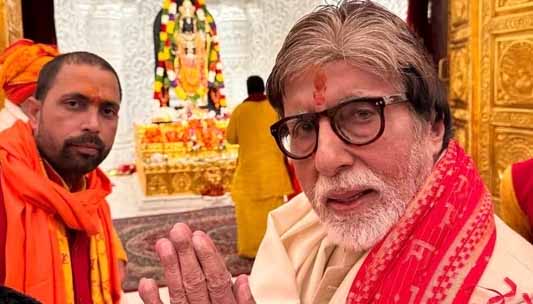 भारी सुरक्षा प्रबंधों के बीच अमिताभ ने राम जन्म भूमि परिसर में प्रवेश किया और राम लला की पूजा अर्चना की। इस दौरान की कुछ तस्वीरें सोशल मीडिया पर तेजी से वायरल हो रही हैं। सामने आईं तस्वीरों में अमिताभ बच्चन हाथ जोड़ राम लला की मूर्ति के सामने खड़े हैं।