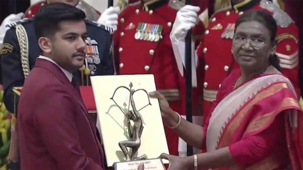 मध्यप्रदेश के निशानेबाज ऐश्वर्य प्रताप सिंह तोमर को 'अर्जुन पुरस्कार' से सम्मानित किया गया है। राजधानी दिल्ली में आयोजित समारोह में राष्ट्रपति श्रीमती द्रौपदी मुर्मु ने निशानेबाज ऐश्वर्य को अर्जुन पुरस्कार से सम्मानित किया। मप्र के निशानेबाज को पुरस्कार मिलने पर सीएम मोहन यादव ने एक्स पर पोस्ट कर बधाई दी है।