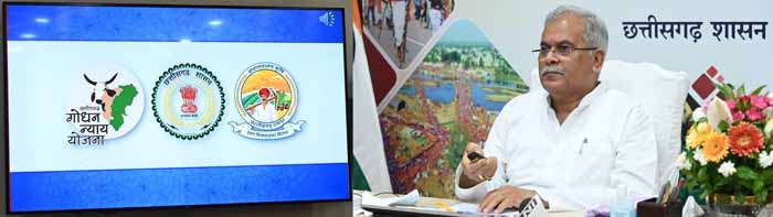 मुख्यमंत्री श्री बघेल ने आज यहां उनके निवास कार्यालय में आयोजित वर्चुअल कार्यक्रम में गोधन न्याय योजना के तहत् से पशुपालक ग्रामीणों, गौठानों से जुड़ी महिला समूहों और गौठान समितियों को 4 करोड़ 40 लाख रूपए की राशि आनलाइन अंतरण समारोह को संबोधित कर रहे थे। उन्होंने कहा कि गौठान में होने वाली आर्थिक गतिविधियों के संचालन के लिए अनिवार्य रूप से गौठान समितियों की बैठक करायी जाए। मुख्यमंत्री ने इस बात पर प्रसन्नता जाहिर कि राज्य के आधे से अधिक गौठान स्वावलंबी हो चुके हैं। उन्होंने गर्मी के मौसम को देखते हुए कहा कि नहरों से तलाबों में पानी भरने का काम त्वरित गति से करें, जिससे पानी की उपलब्धता रहेगी और जल स्तर बढ़ेगा। कार्यक्रम को कृषि मंत्री श्री रविंद्र चौबे ने भी संबोधित किया।