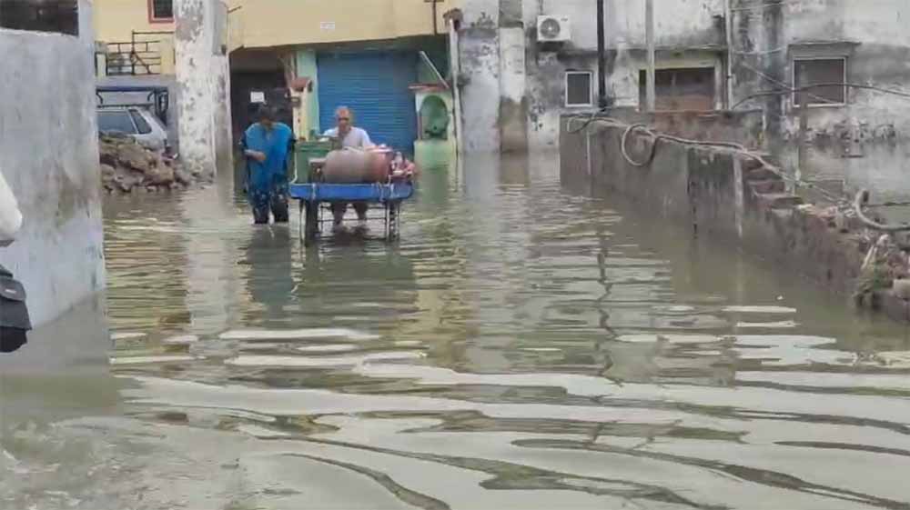 आपको बता दें कि अब तीसरी और सबसे भयानक तस्वीर है राम मंदिर के बेहद करीब बसी कॉलोनी जलवानपुरा की। जहां के एक मात्र रास्ते पर तो घुटनों भर पानी भर ही गया है उसके साथ-साथ लोगों को घरों में पानी घुस गया है, जिसके चलते लोग घर की छत पर रहने को मजबूर हो गए हैं। इतना ही नहीं रास्ते में पानी भर जाने के कारण लोगों को दिनचर्या के सामानों को भी लाने ले जाने में समस्या हो रही है।
