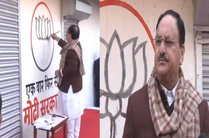 नई दिल्ली 2024 के लोकसभा चुनाव की तैयारियों के मद्देनजर नई दिल्ली की एक दीवार पर 'एक बार फिर से...