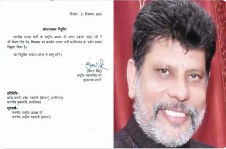 रायपुर. छत्तीसगढ़ में किरण सिंह देव को भाजपा के नये प्रदेश अध्यक्ष के रूप में नियुक्त किया गया है। भारतीय...