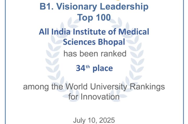 भोपाल: 21 जुलाई 2025 कार्यपालक निदेशक प्रो. (डॉ.) अजय सिंह के मार्गदर्शन में एम्स भोपाल जनस्वास्थ्य से जुड़े प्रभावशाली कार्यों...