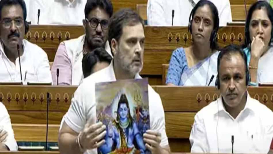 एक जुलाई को राहुल गांधी ने राष्ट्रपति के अभिभाषण पर चर्चा के दौरान संसद में भाजपा पर निशाना साधते हुए भगवान शिव की तस्वीर हाथ में ली थी। उन्होंने भगवान शिव के अलावा गुरु नानक और ईसा मसीह की तस्वीर भी दिखाई थी। उन्होंने कहा था कि हिंदू, इस्लाम, सिख और ईसाई, बौद्ध, जैन धर्म में निडर रहने को कहा गया है। उन्होंने कहा था, भारत अहिंसा का देश है और डर के लिए यहां कोई जगह नहीं है। ये डर का देश नहीं है। भगवान शिव कहते हैं- डरो मत, डराओ मत।' उन्होंने कहा कि हर धर्म में कहा गया है- डरो मत! गुरु नानक जी, जीसस क्राइस्ट, भगवान बुद्ध, भगवान महावीर.. सभी की तस्वीर में आपको अभय मुद्रा नजर आएगी। वे सभी कहते हैं- डरो मत और डराओ मत।