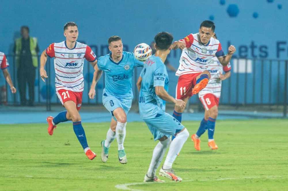 बेंगलुरू एफसी ने इंडियन सुपर लीग के मैच में मुंबई सिटी एफसी को गोलरहित ड्रॉ पर रोककर अपना अपराजेय अभियान बरकरार रखा । बेंगलुरू एफसी के गोलकीपर गुरप्रीत सिंह संधू ने विरोधी टीम के कई हमले नाकाम किये । इस मैच के बाद बेंगलुरू चार मैचों में दस अंक लेकर शीर्ष पर है । वहीं मुंबई तीन मैचों में दो ड्रॉ और एक हार के बाद 11वें स्थान पर है । बेंगलुरू एफसी 18 अक्टूबर को पंजाब एफसी से खेलेगी जबकि मुंबई सिटी का सामना एफसी गोवा से होगा ।