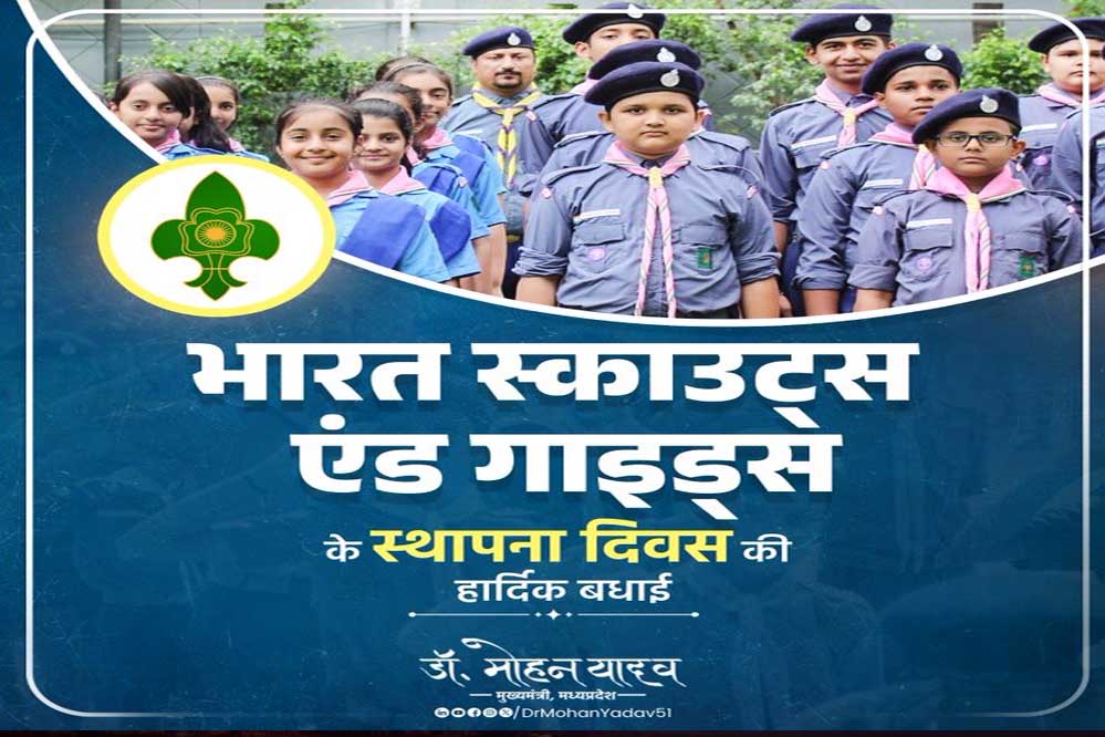 मुख्यमंत्री डॉ. मोहन यादव ने भारत स्काउट्स एंड गाइड्स के स्थापना दिवस की हार्दिक शुभकामनाएं दी हैं। मुख्यमंत्री डॉ. यादव ने कहा है कि बौद्धिक एवं शारीरिक सामर्थ्य को अभिवर्धित कर विद्यार्थियों में अनुशासन, सेवाभाव, सहनशीलता, समर्पण और त्याग की भावना जागृत कराने वाला भारत स्काउट्स गाइड्स संगठन, राष्ट्रीय व मानवीय मूल्यों को संचारित कर विद्यार्थियों को श्रेष्ठ नागरिक बनाने के लक्ष्य को समर्पित है। संगठन का उद्देश्य सराहनीय है, यह प्रयास सतत् सफल हो, यही शुभेच्छा है।