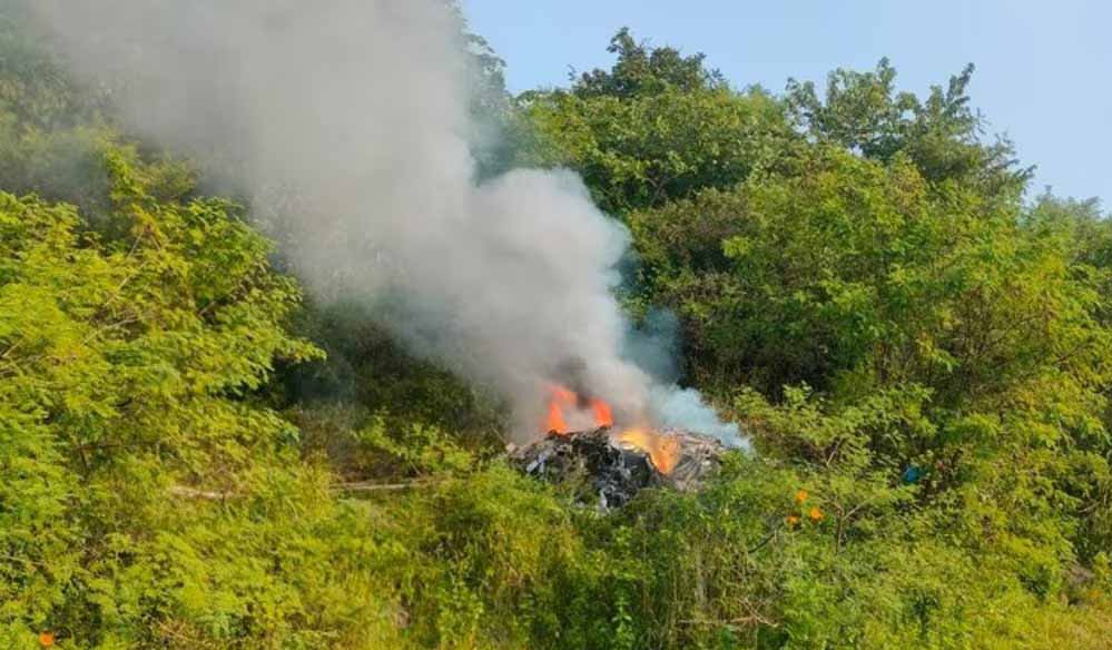 पुणे क्रैश का वीडियो भी सामने आया है। इसमें दिख रहा है कि आसमान से उड़ते-उड़ते हेलिकॉप्टर जमीन पर आकर गिरा। कुछ ग्रामीणों की नजर हेलिकॉप्टर पर पड़ी तो उन्होंने इसका वीडियो बनाया। हेलिकॉप्टर जमीन पर गिरा और इसमें आग लग गई। तेज आवाजों और धमाकों के साथ कुछ ही देर में हेलिकॉप्टर जलकर पूरी तरह से राख हो गया।