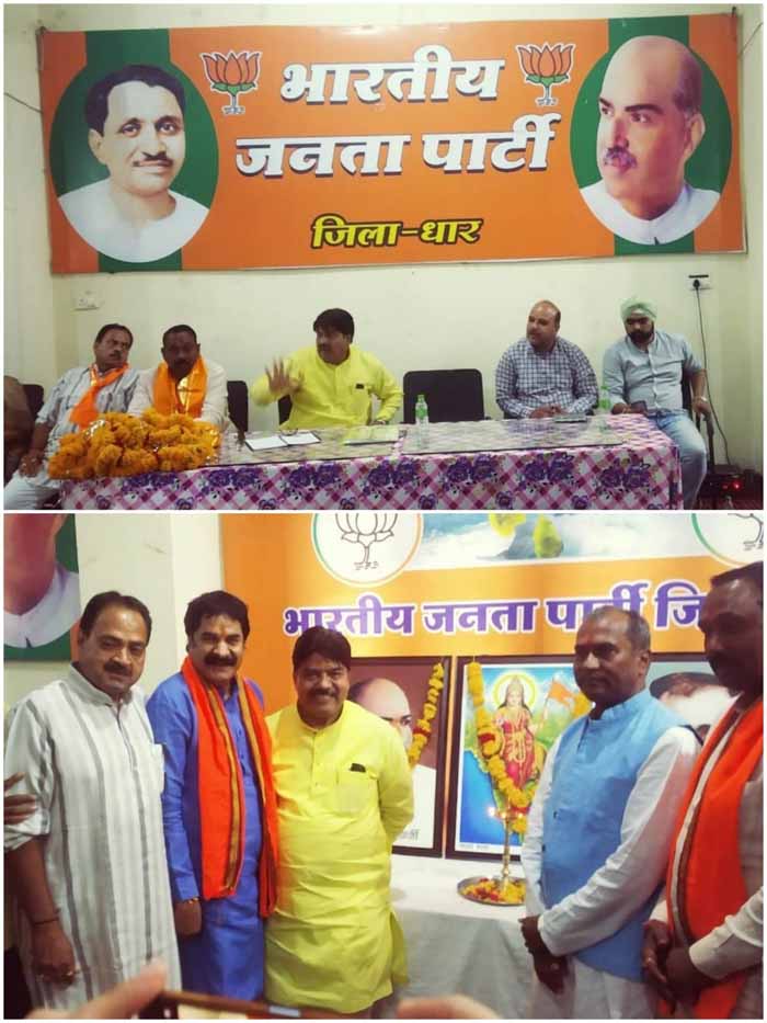 भारतीय जनता पार्टी प्रदेश संगठन के निर्देश पर भाजपा जिला संगठन की जिला कामकाजी बैठक शुक्रवार को भाजपा जिला कार्यालय पर संपन्न हुई। बैठक में भाजपा जिला प्रभारी व उज्जैन विकास प्राधिकरण अध्यक्ष श्री श्याम बंसल, भाजपा जिला अध्यक्ष मनोज सोमानी,जिला पंचायत अध्यक्ष सरदार सिंह मेड़ा भाजपा जिला महामंत्री क्रमशः सन्नी रिन, प्रकाश धाकड़, जयराम गावर ,पूर्व नपा अध्यक्ष देवेंद्र पटेल, कुक्षी नगर परिषद अध्यक्ष रेलम चौहान , नरेश राजपुरोहित