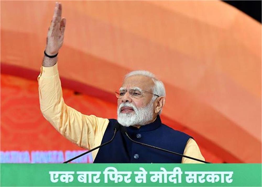 मोदी ने कहा, ‘‘अब देश छोटे सपने नहीं देख सकता है और ना ही देश अब छोटे संकल्प ले सकता है। सपने भी विराट होंगे और संकल्प भी विराट होंगे। हमारा सपना भी है और हम सब का संकल्प भी है कि हमें भारत को विकसित बनाना है।'' उन्होंने कहा, ‘‘इसमें अगले पांच वर्षों की बहुत बड़ी भूमिका होने जा रही है। अगले पांच सालों में भारत को पहले से भी कई गुना तेजी से काम करना है। अगले पांच सालों में हमें विकसित भारत की तरफ एक लंबी छलांग लगानी है। इन सारे लक्ष्यों की प्राप्ति के लिए पहली शर्त है सरकार में भाजपा की जोरदार वापसी।'' प्रधानमंत्री ने कहा कि आज विपक्ष के नेता भी ‘अगली बार मोदी सरकार' बोल रहे हैं और ‘अगली बार राजग (राष्ट्रीय जनतांत्रिक गठबंधन) सरकार, 400 पार' के नारे लगा रहे हैं। उन्होंने कहा, ‘‘राजग को 400 पार करने के लिए भाजपा को 370 के मील का पत्थर पार करना ही होगा।''