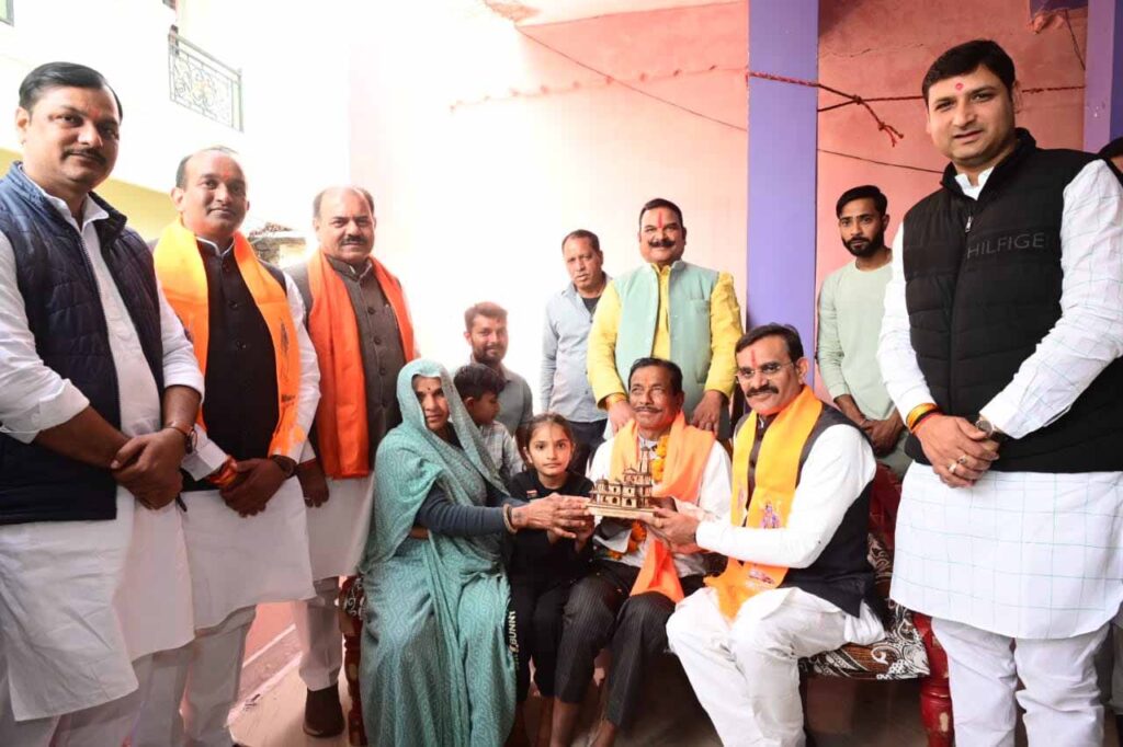 भारतीय जनता पार्टी प्रदेश के सभी कारसेवकों को परिवार सहित अयोध्या लेजाकर प्रभु रामलला के दर्शन कराएगी। वर्ष 1992 में अयोध्या में प्रभु श्रीराम के जन्मस्थान पर बने कलंक के उस ढांचे को मिटाने का कार्य कारसेवकों ने किया था। कारसेवकों ने कहा था कि मंदिर वहीं बनाएंगे, आज उसी स्थान पर प्रधानमंत्री नरेंद्र मोदी जी द्वारा कल सोमवार 22 जनवरी को अयोध्या के भव्य श्रीराम मंदिर में रामलला की प्राण-प्रतिष्ठा करने के साथ कार सेवकों का संकल्प भी पूरा होने जा रहा है। यह बात भारतीय जनता पार्टी के प्रदेश अध्यक्ष व सांसद विष्णुदत्त शर्मा ने भोपाल के कोलार के पास ग्राम थुआखेड़ा में कार सेवक अचल सिंह का सम्मान करते हुए कही।