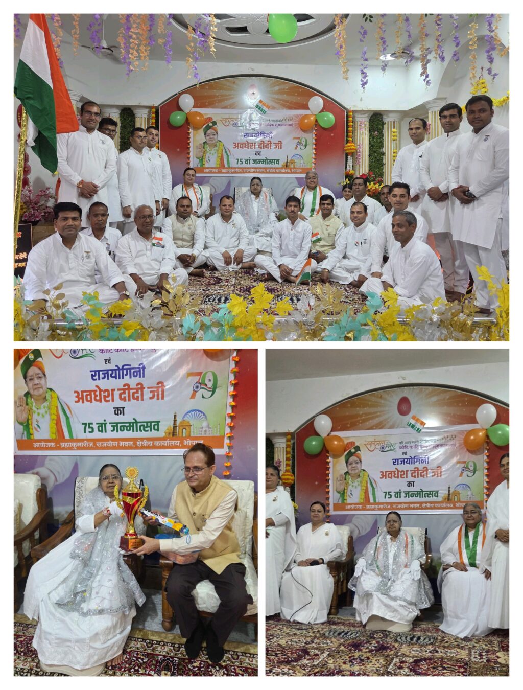 ब्रह्माकुमारीज आश्रम के भोपाल स्थित राजयोग भवन में 15 अगस्त को स्वतंत्रता दिवस, श्रीकृष्ण जन्माष्टमी तथा बड़ी बहन अवधेश दीदी जी (प्रशासक वर्ग की नेशनल कोर्डिनेटर) भोपाल जोन की संचालिका का जन्मदिवस अति हर्षोल्लाश और धूमधाम से मनाया गया। इस कार्यक्रम में विधानसभा के प्रमुख सचिव अवधेश प्रताप सिंह ने कहा हमें दीदी की दी हुई शिक्षा को जीवन में आत्मसात करना चाहिए। त्याग तपस्या, ज्ञान रत्नों की धनी परम आदरणीय दीदी को जन्मदिन की बधाई तथा शुभकामनाएं दी। छतरपुर से समाज सेवी विभाग की भोपाल जोन कोर्डिनेटर शैलजा बहन जी ने कहा- बड़ी बहन जी ने हर क्षेत्र में नम्बर वन बनी, चाहे वी आई पी सेवा में ,चाहे जोन लेवल की सेवा में बड़े बड़े कार्य उन्होंने कर दिखाये है। हमें भी हिम्मत करके बड़े से बड़ी सेवा का संकल्प करना चाहिए, दूरदर्शी बुध्दि रखना चाहिए । मीडिया विंग की प्रमुख डाक्टर रीना दीदी ने मंच संचालन किया। अवधेश बहनजी ने आशीर्वचन में कहा श्रीकृष्ण की विशेषता बहुत सारी है, लेकिन उसमें से एक विशेषता है खिलाने की, जब मट्की फोड़ी तो सबको मक्खन खिलाया अकेला नहीं खाया, सबको लेकर चलना चाहिए ये श्री कृष्ण ने सिखाया, उनमें अपना बनाने की कला और दूसरों की विशेषता देखने की परख थी। हमें भी कभी किसी की कमजोरी नहीं देखनी है बल्कि उसकी विशेषता को देखना चाहिए। अंत में उन्होंने कहा सभी सदा स्वस्थ रहें, सम्पन्न रहे, निर्विघ्न रहे।