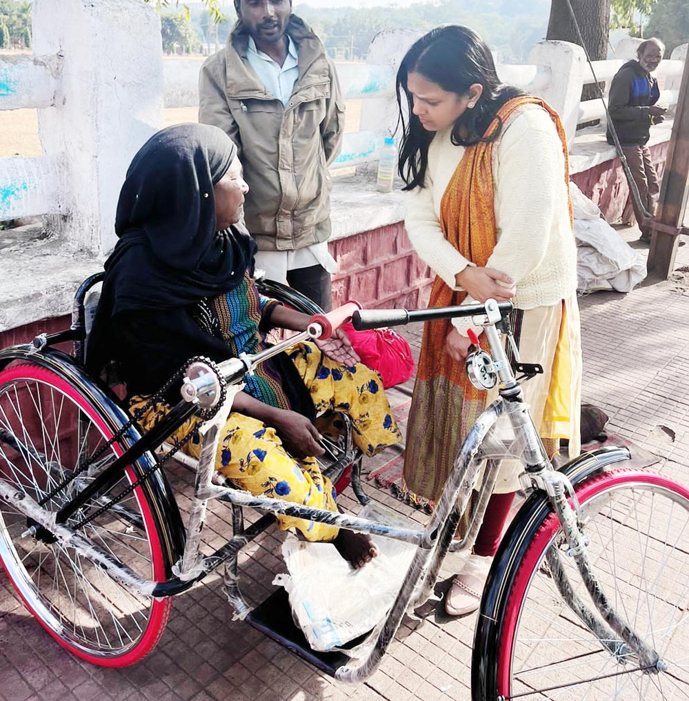 मुख्यमंत्री डॉ. मोहन यादव द्वारा दिये गये निर्देशो को गुरूवार को अमलीजामा पहनाते हुए जिला प्रशासन ने गुरूवार को बुदनी की दिव्यांग बहन सायरा बानो को ट्राई साइकिल प्रदान कर दी गई। उल्लेखनीय है कि देर रात्रि भोपाल में विभिन्न स्थानों पर निराश्रित लोगों और अस्पताल परिसर में निवास कर रहे नागरिकों से भेंट की थी। परिजन के उपचार के लिये भोपाल आई इनमें से एक सायरा बानो से मुख्यमंत्री डॉ. यादव ने निसंकोच अपनी बात कहने को कहा बुदनी निवासी सायरा ने मुख्यमंत्री को कहा था कि यदि उसे ट्राई साइकिल मिल जाए तो उसका जीवन आसान हो जाएगा।
