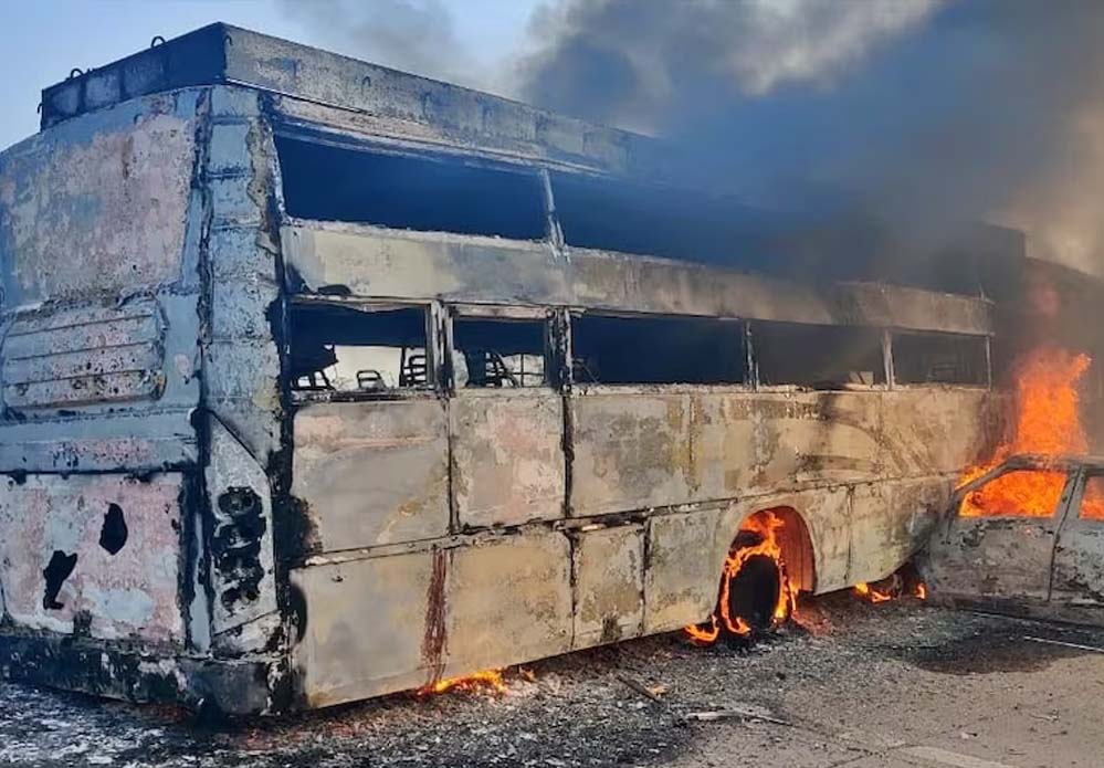 बस में घुसी कार, 5 लोगों की जिंदा जलकर मौत