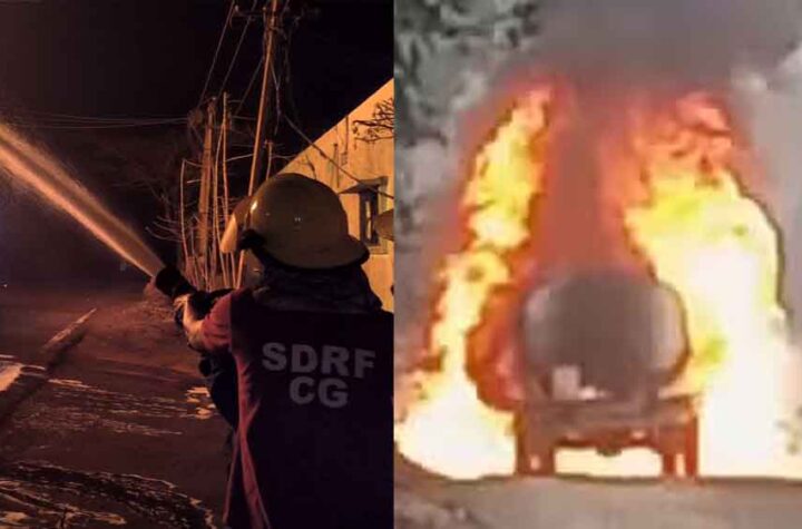 रायगढ़. रायगढ़ जिले में रविवार की सुबह जेपीएल के गेट नंबर-2 के पास खड़ी डीजल टैंकर में अचानक आग लग...
