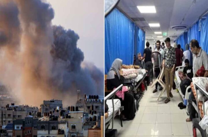 गाजा पट्टी. गाजा के दूसरे सबसे बड़े शहर खान यूनिस में नासिर मेडिकल कॉम्प्लेक्स अस्पताल की इजरायली सेना की घेराबंदी...