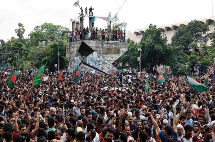 ढाका बांग्लादेश में सरकार विरोधी हिंसक प्रदर्शनों के बीच ढाका में राष्ट्रीय ध्वज और 'हैडबैंड' बेचने वाला मोहम्मद सुमन देश...