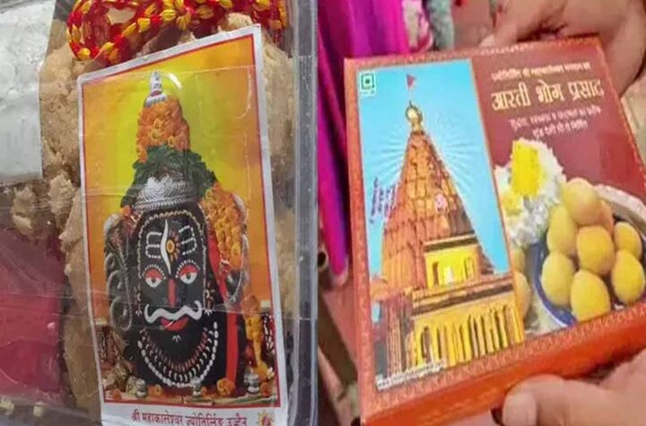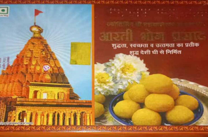 इंदौर. महाकालेश्वर मंदिर में वितरित किए जाने वाले आरती भोग प्रसाद के पैकेट पर महाकाल मंदिर शिखर, नागेश्वर महादेव मंदिर...