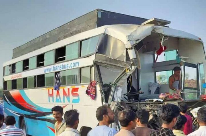 धार धार में मंगलवार सुबह 7 बजे एक बस ओवरटेक करते समय आगे जा रहे ट्राले में घुस गई। हादसा...