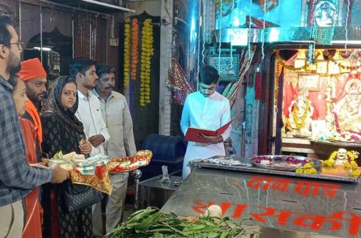 रतलाम शहर के माणकचौक स्थित प्रसिद्ध महालक्ष्मी मंदिर में भक्तों द्वारा सजावट के लिए दिए जाने वाले जेवर, सिक्के, मोती,...